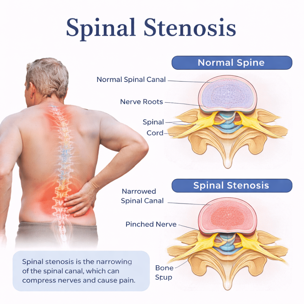 Inside the spine, there is a passage where nerves travel. Think of it as a tunnel. When that tunnel becomes narrower, the nerves do not have enough space. That narrowing is called spinal canal stenosis. So when people ask for a spinal stenosis definition, it really comes down to reduced space inside the spine that affects nerve movement. The tricky part is this. The narrowing can exist for years without symptoms. It only becomes a problem when the nerves start reacting to that pressure.