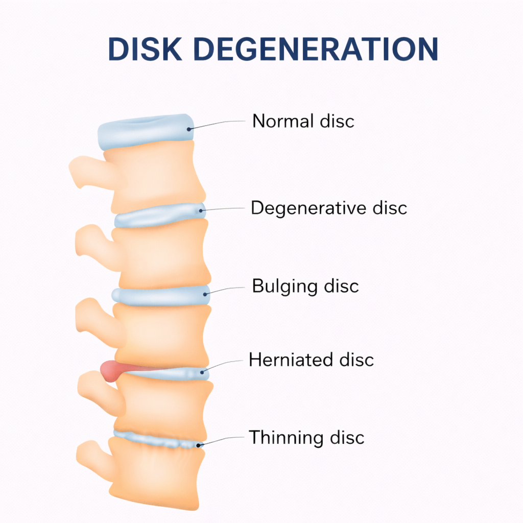 If someone hears the name for the first time, it sounds worse than it is. The DDD definition becomes clearer when you think of the spine as a stack of bones with soft cushions in between. These cushions are the discs. They help absorb shock and allow movement. With time, these discs lose some of their softness. They become thinner and less flexible. This process is called disc degeneration. So when people ask, what is degenerative disc disease, it simply means the discs are not as strong or hydrated as they once were. It is often called DDD spine, even though it is more of a wear-related change than a disease.